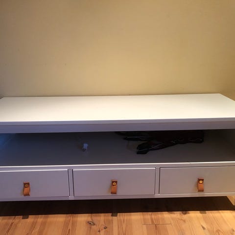 Hvit TV-benk med god plass til tv og lagring. Brukt, men i fin stand. Selges pga flytting.