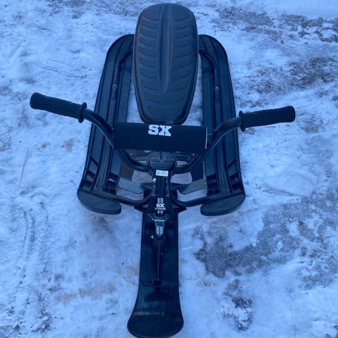 Stiga Snowracer Pro selges. Trenger nytt ratt som kan kjøpes mange steder, f.eks. Clas Ohlson. Det koster fra 269 kr. Ellers fungerer den som den skal.