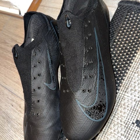 Kun brukt en times tid. Gutten ville heller ha fotballsko med knotter derfor ble ikke disse brukt og de selges videre.