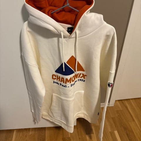 Jean Paul Flerfarget hettegenser i bomull for herre, størrelse L. Genseren har hette med snøring og frontlomme. Materialet er bomull, og plagget har flerfarget design med merke på brystet.