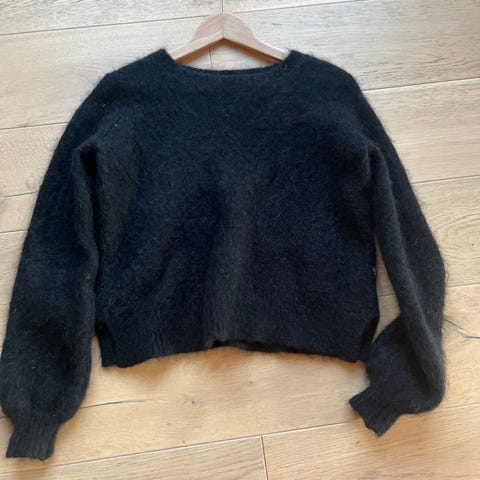 Deilig myk genser i lysegrå str. xs - romslig i størrelse og kan passes av str. xs til m etter hvordan du ønsker den skal sitte. Modellen heter Beatrice og har et fint hullmønster foran.