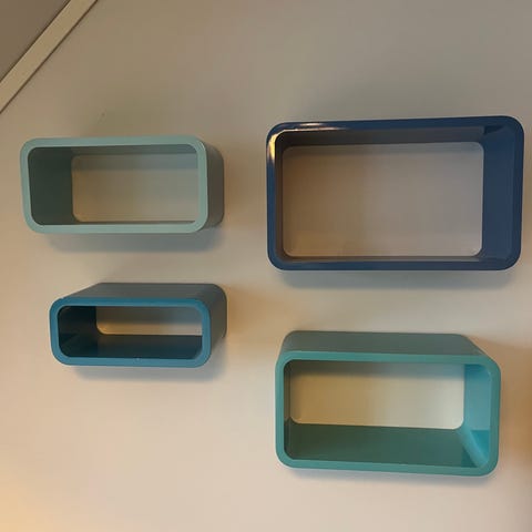 Har svarte skruer til å fylle "hullene" i veggfeste.