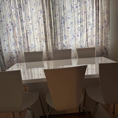 Large glass dining table for sale. The table is in good condition and only has normal signs of wear