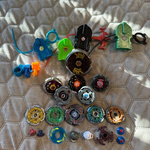 Alle selges samlet og selges som de er. Beybladene er gamle så kan ikke garantere standen på de er 100% bra.