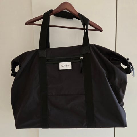 Selger en rosa weekend bag fra Rofa Design.