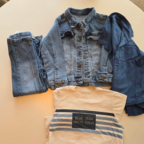 Stooor klespakke i str 98/104. Den perfekte barnehagepakken! Ull, fleece, bukser, gensere, sett med ulike kule motiv, jeans, skjorter. En flekk her eller der kan forekomme, men det meste er topp for en ny kar i barnehagen!