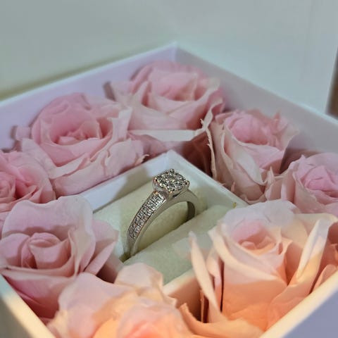 Ringen selges komplett med eske og sertifikat, se bilder.