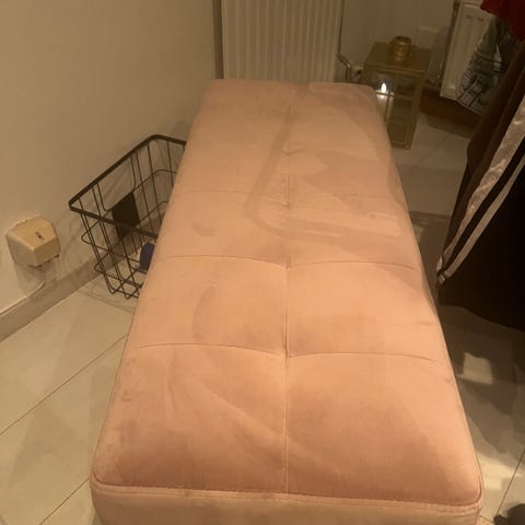 Pent brukt puff fra Bolia Scandinavia i rosa-lilla farge, med masse lagringsplass, selges billig grunnet flytting.