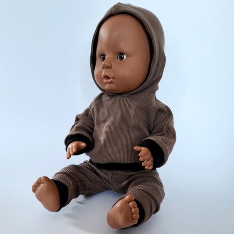 Hjemmesydd buksedress som passer til baby born eller dukker av samme størrelse.