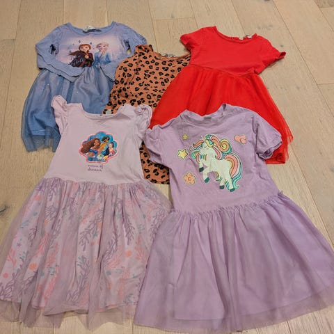 5 langermede kjoler fra HM i bomull. Lite og pent brukt. Strl 122/128