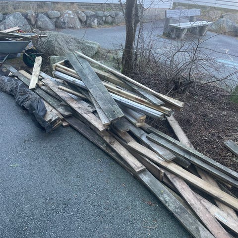 Kom og hent. Noe er kappet i sekk. Mye panel som kan kuttes og brennes. Tørr material.