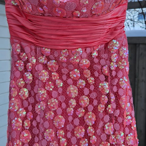 Nydelig ballkjole i fergen dus blå/grå-ish. Med tyll "diamanter" og blonder.