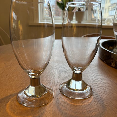 Holmegaard glass for snaps og konjakk pluss to pene vinglass selges høystbydende