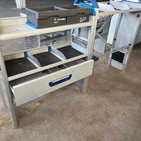 Hylle av stål. Mål på bilder. Passer til bruk i verksted eller lignende miljøer og som varebilinnredning