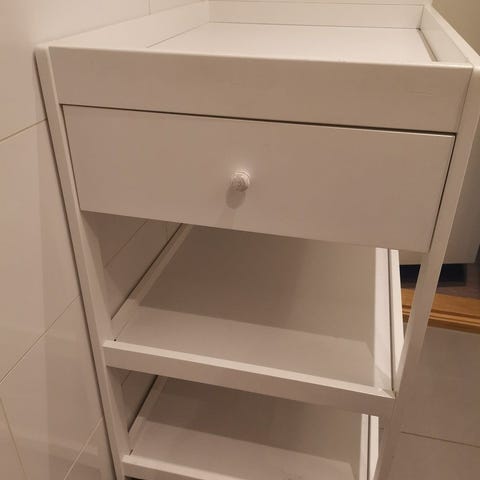 Solid stellebord fra Babydan. Stellebordet har 2 hylleplan og en romslig, uttakbar skuff til oppbevaring. Det inngår ikke stellematte.