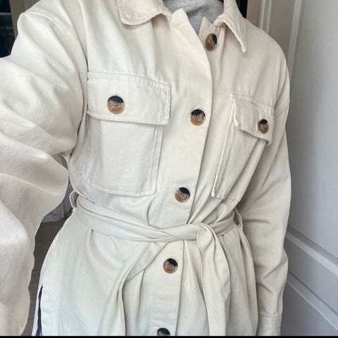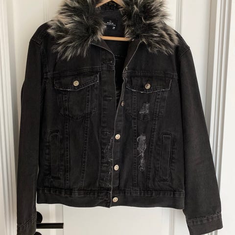 Selger en varm og klassisk denimjakke fra BIKBOK i svart med innvendig lys beige fôr.