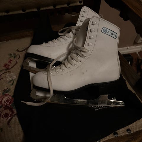Ryggan Andre skøyter barn størrelse 35 i hvit farge. Skøytene er beregnet for barn og har tradisjonelt design med lisser og metallblad for skøyting på is.