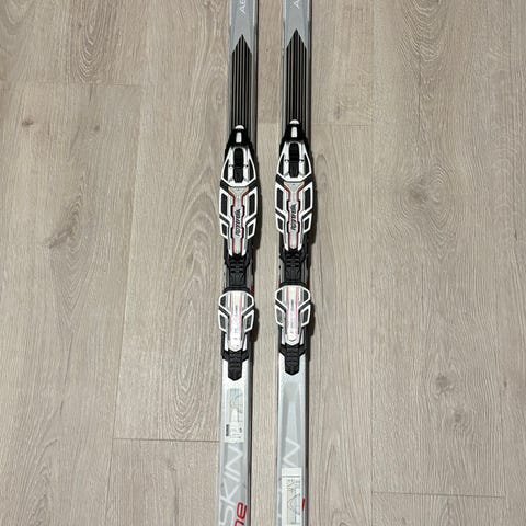 Salomon Aero 7 X-Skin skis in 190cm length. Good grip and glide with the skin insert. Salomon Prolink bindings.