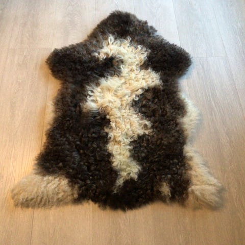 Nesten helt hvitt skinn av spælsau/villsau selges.