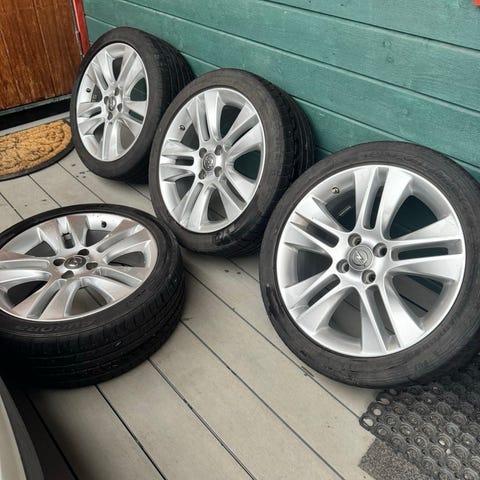 Selger et komplett sett felger og dekk til Audi. Felgene har stått på en A6 allroad og er i dimensjon 19x8.5 et43. Dekk er Kumho escta ps91 i dimensjon 255/45-19. Dekk er nesten som ny, bare brukt noen måneder. To av felgene har fått noen kant riper ( se bilder) men ser ellers greie ut.