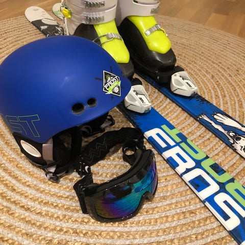 Head Junior twintip 105 cm godt brukt, med orange staver 100 cm. Hvite og rosa alpin sko størrelse 35(220). Alpinski og støvler i hvit og rosa farge, tilpasset barn.