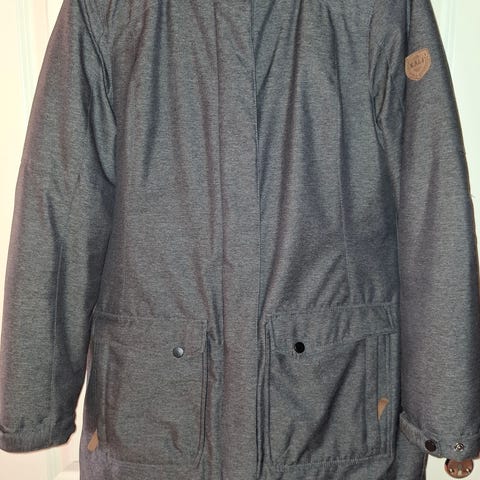 Pent brukt lett kåpe fra Kali. Med hette og stramming rundt livet.
