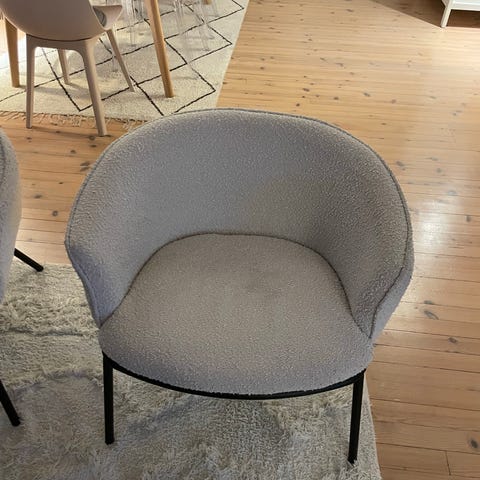 Pent brukt. Noen små ubetydelige flekker, kan nok vaskes bort, har ikke forsøkt .beina er sprayet sort av meg, trenger nok en ny runde med spray eller nye ben som kan kjøpes billig på jula eller Ikea.