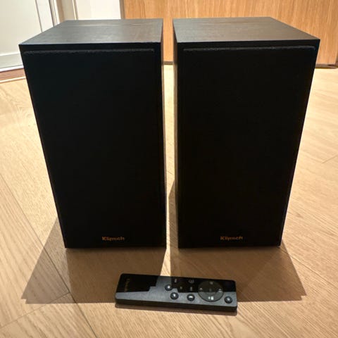 Selger Klipsch aktive bordhøytalere. Vært koblet til pc og alltid behandlet pent. Fungerer som de skal og uten bruksmerker.