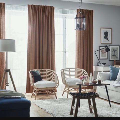 LYSTETT gardin i melert stoff. Gardinen har et tungt og vakkert fall. Dette er en tidløs gardin som passer både til stue, soverom og kontor. Den henges opp med rynkebåndskroker, enten på gardinstang eller skinne. Gardinen finnes i tre lengder, hvorav den ene er ekstra lang – perfekt når du ønsker å henge gardiner fra tak til gulv. Som ny bortsett fra litt rufs helt på toppen av gardinene fra at de har hengt i kliper, noe som ikke er noe særlig merkbart