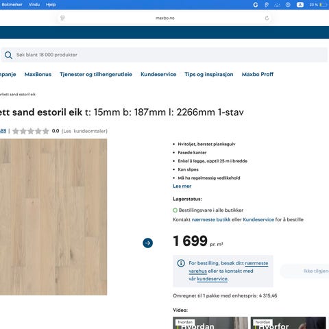 Kährs Eik Garmisch 1 Strip parkettgulv med dimensjoner 15x187x2266 mm. Pakken inneholder 2,54 m² gulv med en vekt på 21 kg. 6 pakker. Rester etter ombygging fra 2019. Totalt 15,24 m2. Selges kun samlet.