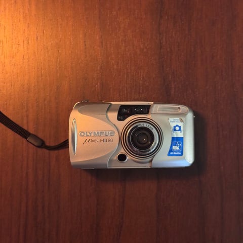 Legendary Olympus compact film camera. Sharp Zuiko lens, fast autofocus, and fully automatic operation. Pocket-size, weather-resistant body – perfect for everyday carry, travel, and street photography. Known for reliable performance and beautiful film results.