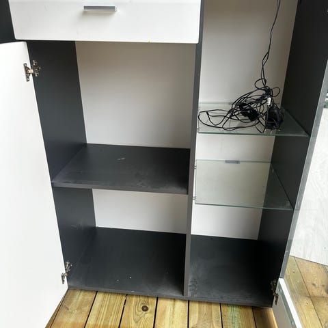 Vitrineskap med sorte detaljer