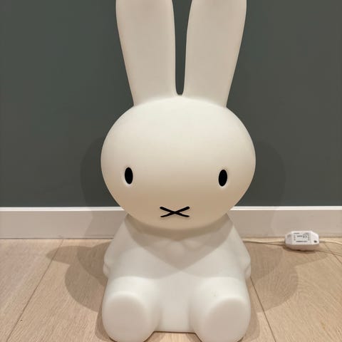 Selger en nydelig Mr Maria Miffy lampe. Miffy er laget av hvit, holdbar og slitesterk plast. Lampen har en varm, myk glød, som skaper en harmonisk og koselig atmosfære i rommet. Nightmode er en veldig svak glød, som kan stå på over natten. En søt interiørdetalj.