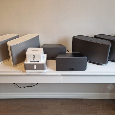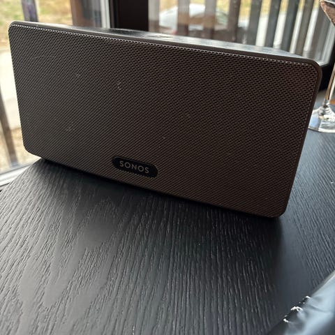 Selger en Sonos Play:3 høyttaler i sort og grå farge.