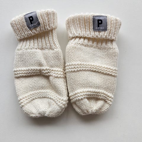 Newbie klorevotter i størrelse 0-3 mnd, laget av bomull. Vottene er myke og tykke.