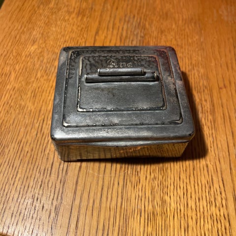 Sett med syv suvenirskjeer med dekorative motiver og emaljefarger. Fire skjeer er i 40 g sølv, men de tre emaljerte ikke har sølvstempel. Selges samlet for 100 kr.