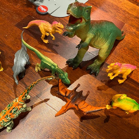 16 dinosaurer selges for 150 kr.