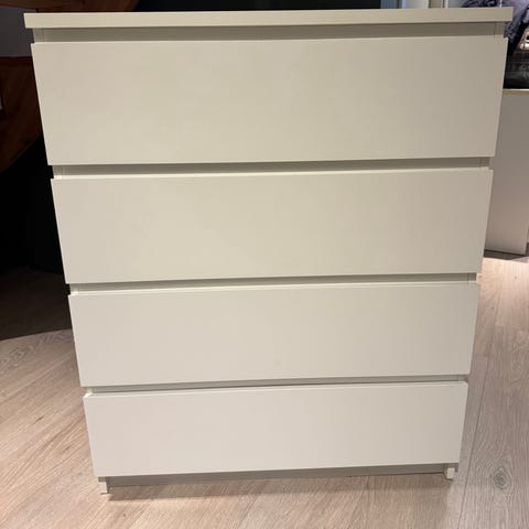 IKEA MALM kommode med 3 skuffer i hvit farge. Kommoden har mål på 80 cm i bredde, 48 cm i dybde og 78 cm i høyde. Den er laget for oppbevaring og passer til ulike rom i hjemmet. ingen skader , noe ikke så synlige små bruksmerker, kan leveres mot tillegg.