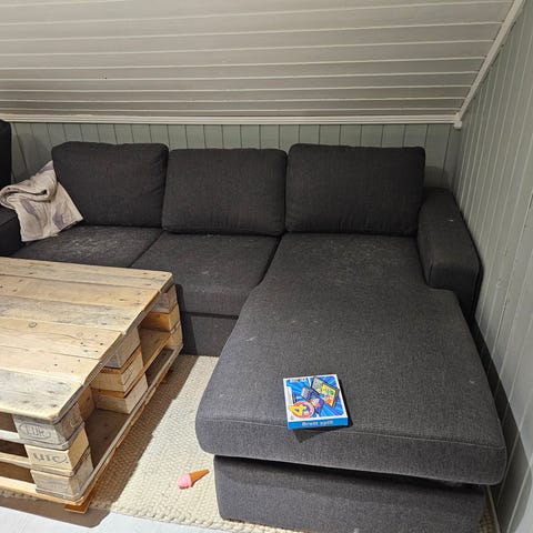 Fin sofa (kostet 5999 ny) med sjeselong som kan gjøres til sovesofa.