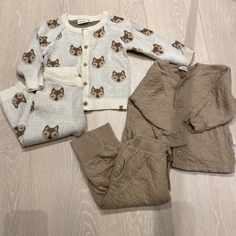 Beige: strl 74 (6-9 mnd). 100% bomull. Lite brukt