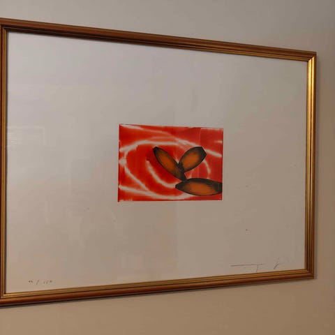 Mål: 46 cm høyrt og 40 cm bredt. Inkludert passpatout og ramme.