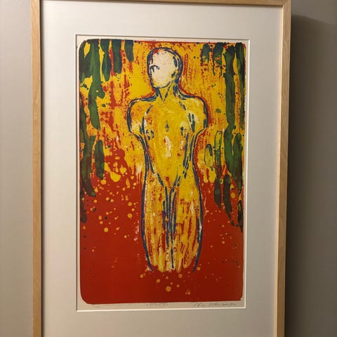 Litografi av Nico Widerberg. Bildet heter ‘Trøst”.