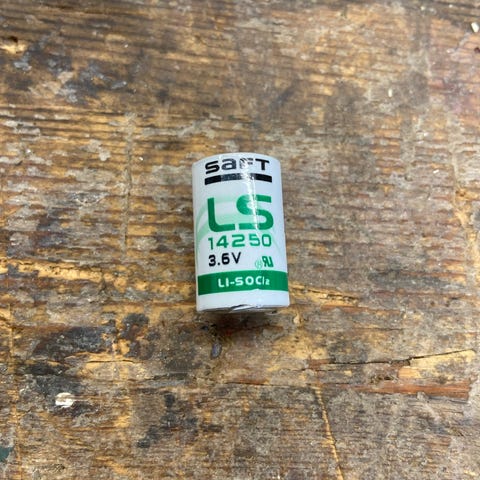 Saft LS 14500 litiumbatteri med spenning på 3,6 V. Batteriet har typen Li-SOCl2 og er egnet for bruk i ulike elektroniske enheter som krever pålitelig og langvarig strømforsyning.