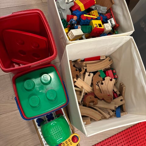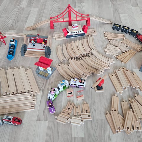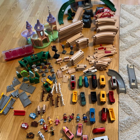 Masse tog,togbaner og annet stæsj for å leke/bygge forskjellige baner.