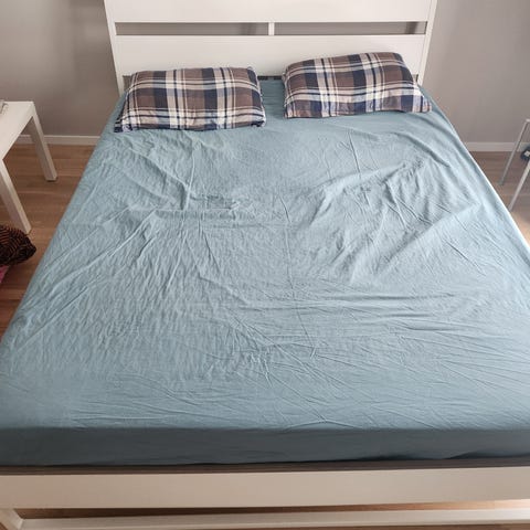 Denne sengen er veldig godt brukt og ren. Den har fire metallben, ett av beina er løst.