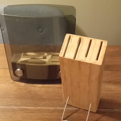 Det er noen bruksmerker som fint kan pusses bort. Blokken er i massivt treverk.