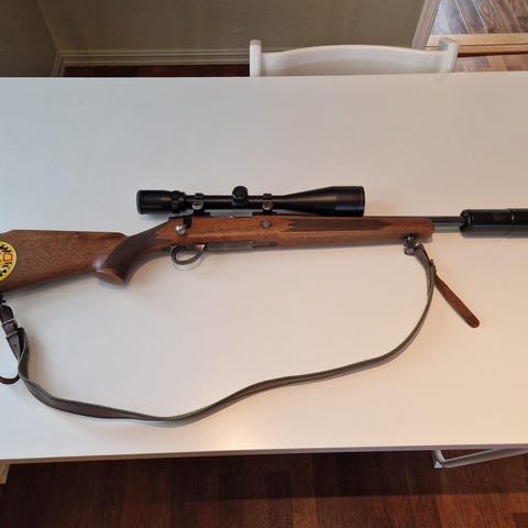 Har montert kkc stokk, ettermontert bedre avtrekk mekanisme fra timney, lyd demper og avtagbart 5 skudds magasin.