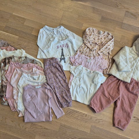 barneklær for jenter i størrelse 92, hovedsakelig i rosa farge.