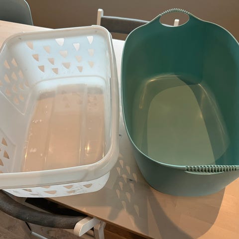 Kurv gies bort mot henting.