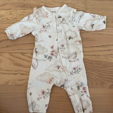 H&M barneklær i størrelse 50 for jente, dus rosa, beige og hvit.